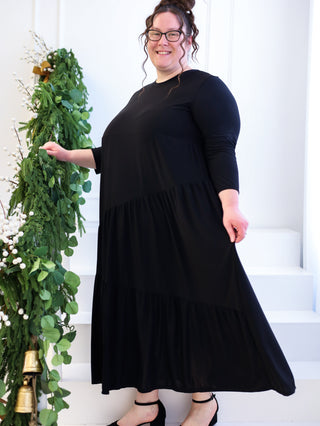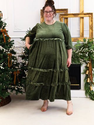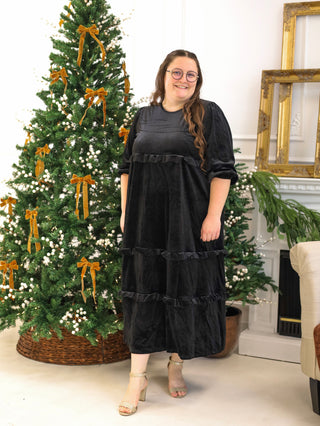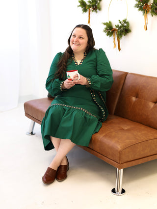 This adorable plaid dress is perfect fall days. Featuring real buttons, ruffle detail at the hem, and a mixed plaid print. Available in sizes small-large.