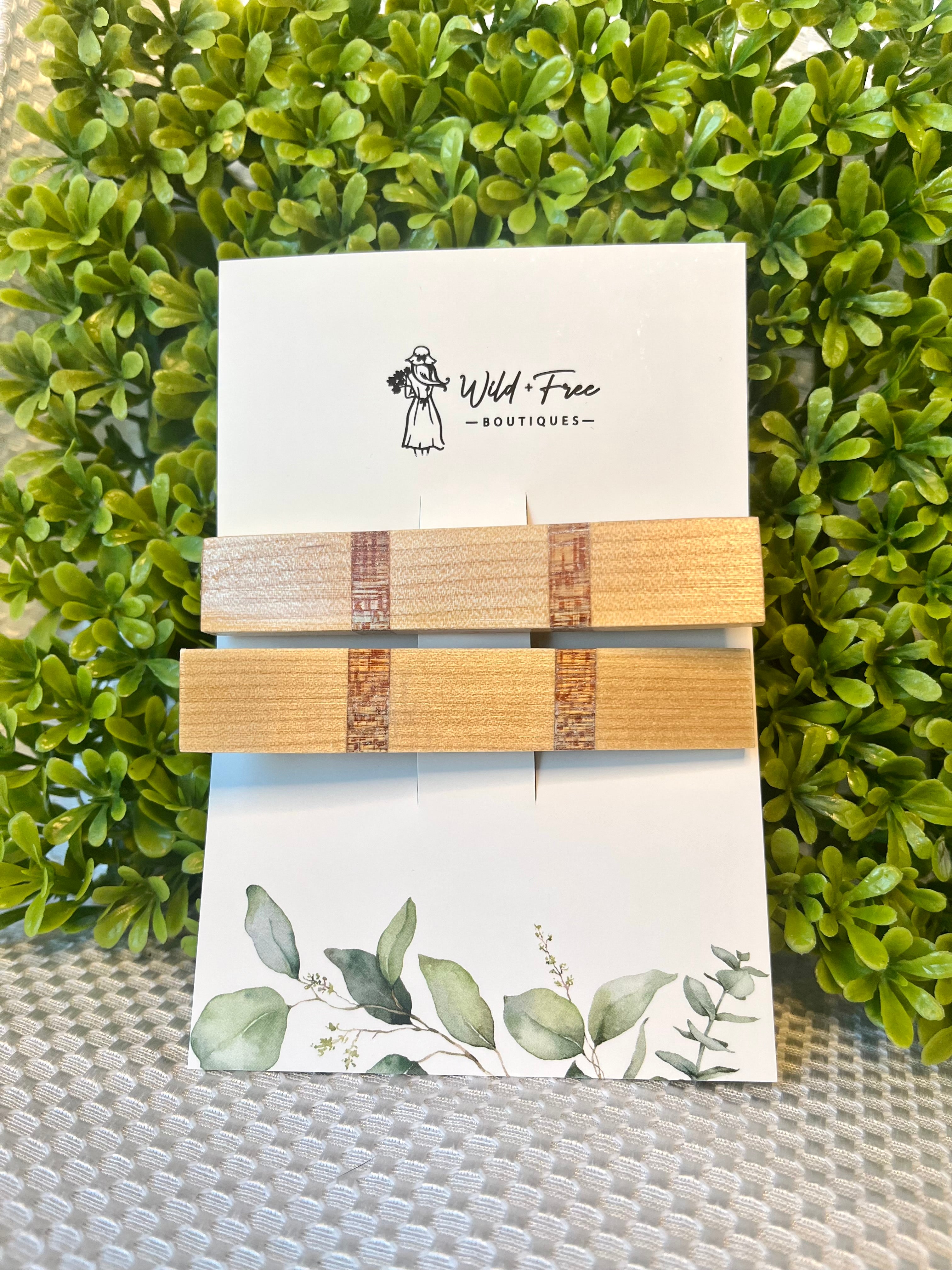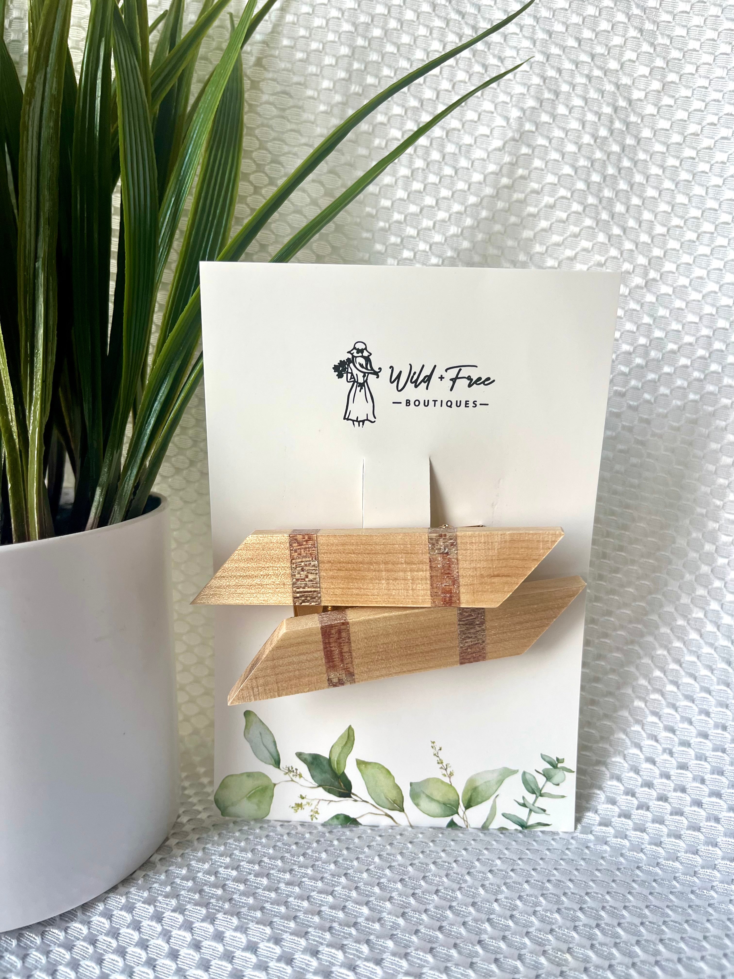 These handmade, mixed wood hair clip sets come in two styles, both the angled and straight alligator clips. An ideal accessory for any fashionista that likes to stand out. The strong and durable material offers secure and effortless hold, allowing you to create unique and stylish looks. Get these one of a kind handmade pieces for yourself or a thoughtful gift for others.