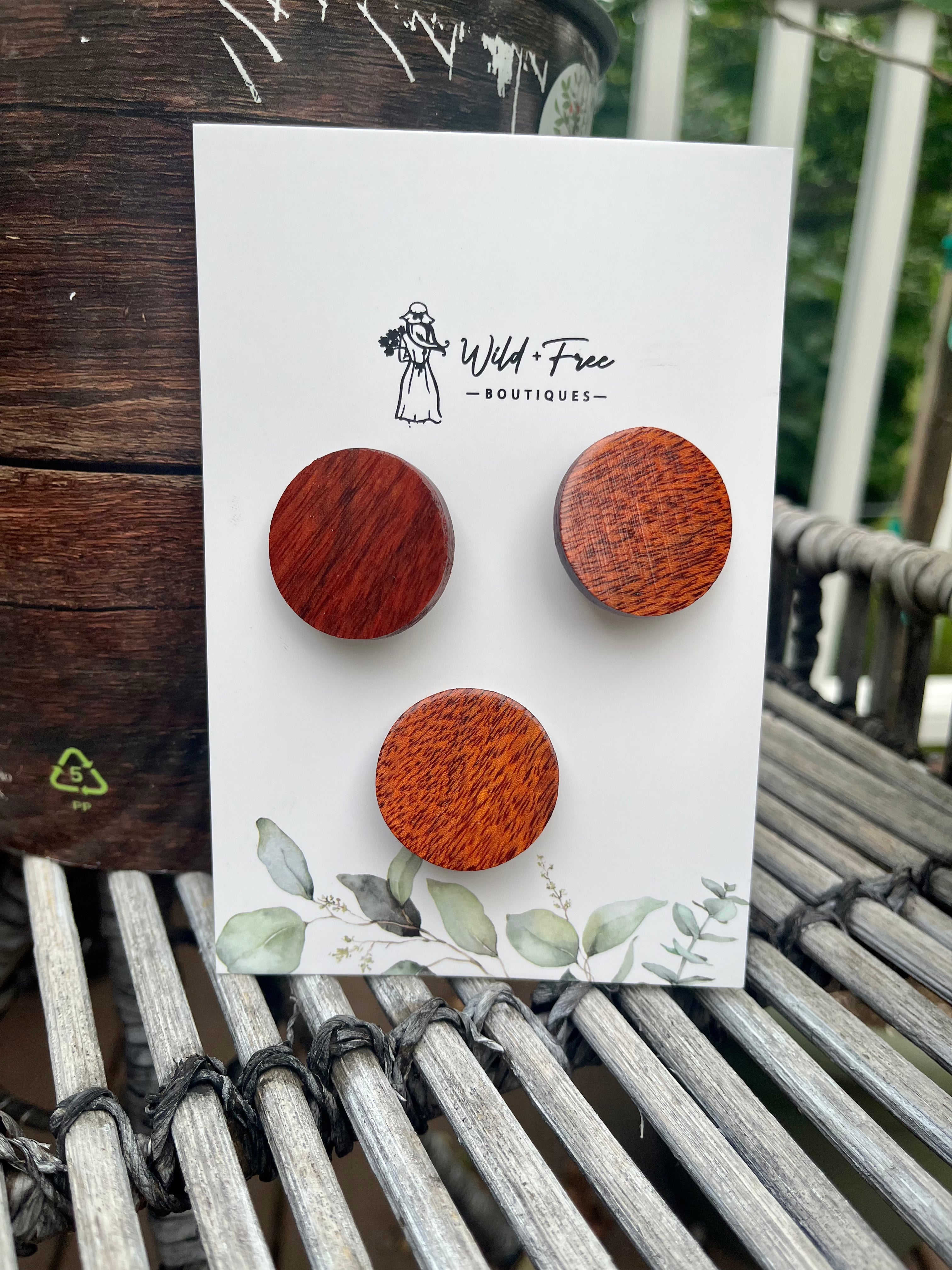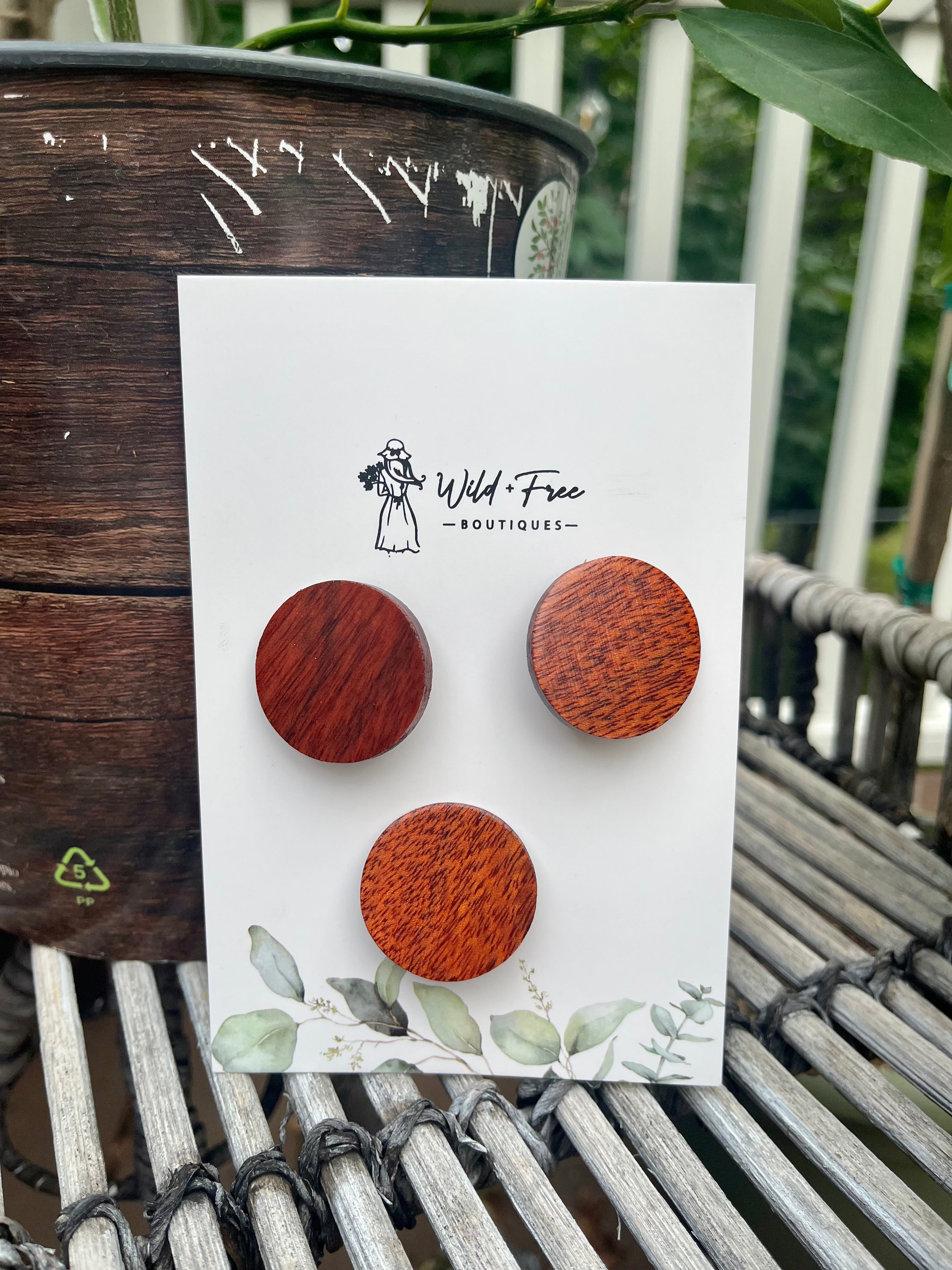 Experience the natural beauty of South American Bloodwood with these hand crafted circle clips. These clips feature the distinctive red color of high-quality imported bloodwood. This set is perfect for adding an exotic flair to any outfit.
