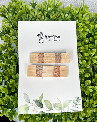 Classic Neutrals Hand Made Wood Hair clip Sets (Blonde, Chestnut, Redwood)
