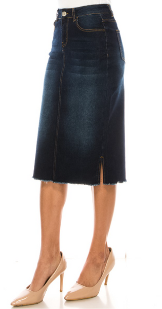 Shop classic and trendy apostolic denim skirt styles! You’ll find knee length jean skirts as well as maxi denim skirts in black and blue and distressed denim skirts. We regularly stock classic denim skirt styles you’re sure to love!