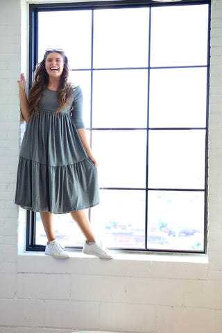 Charcoal Gray Knit Essential Tiered Midi Dress