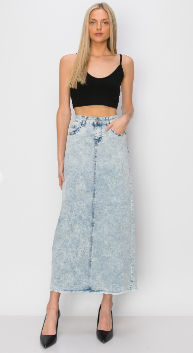 Light Acid Wash Maxi Denim Skirt