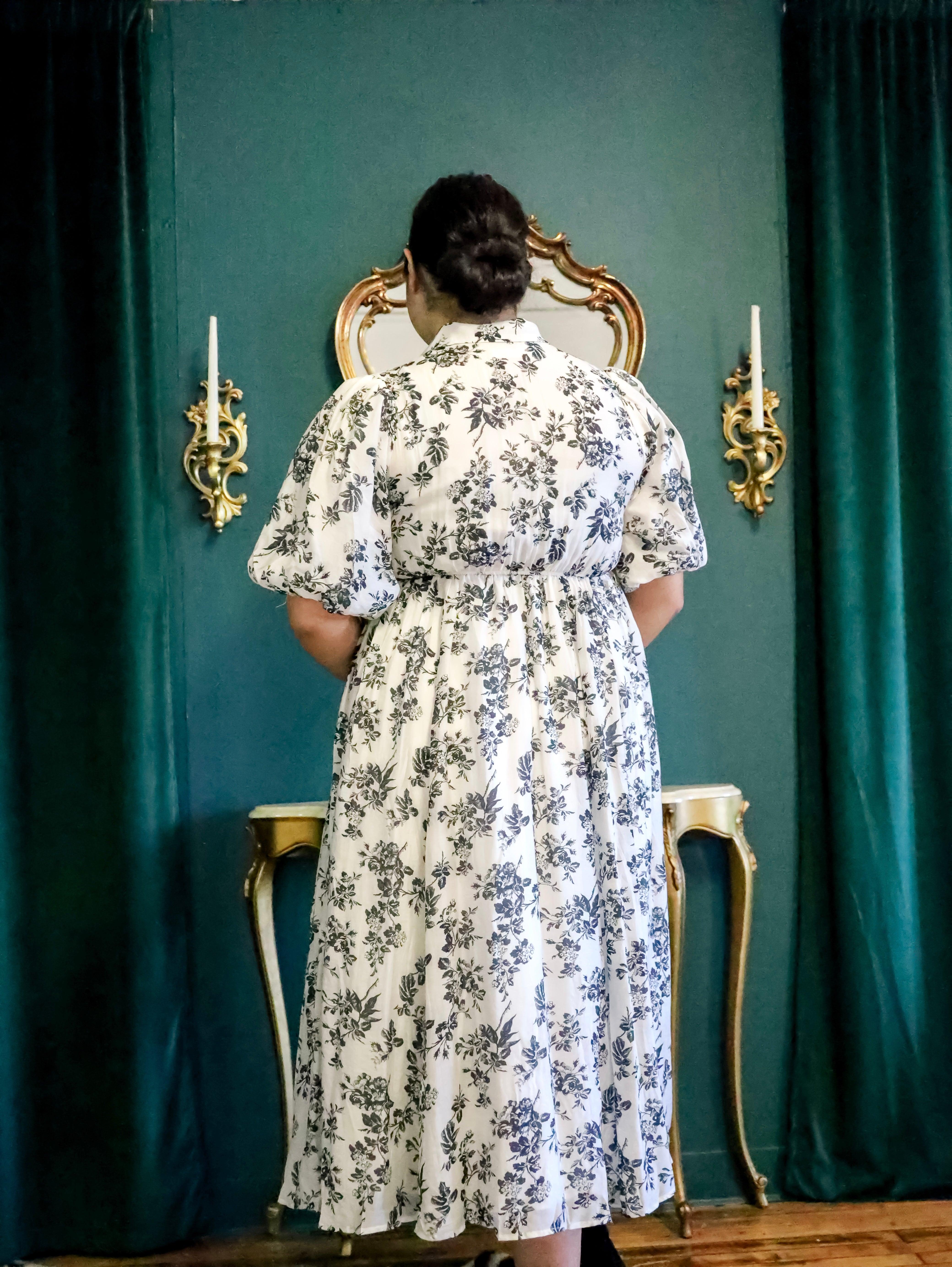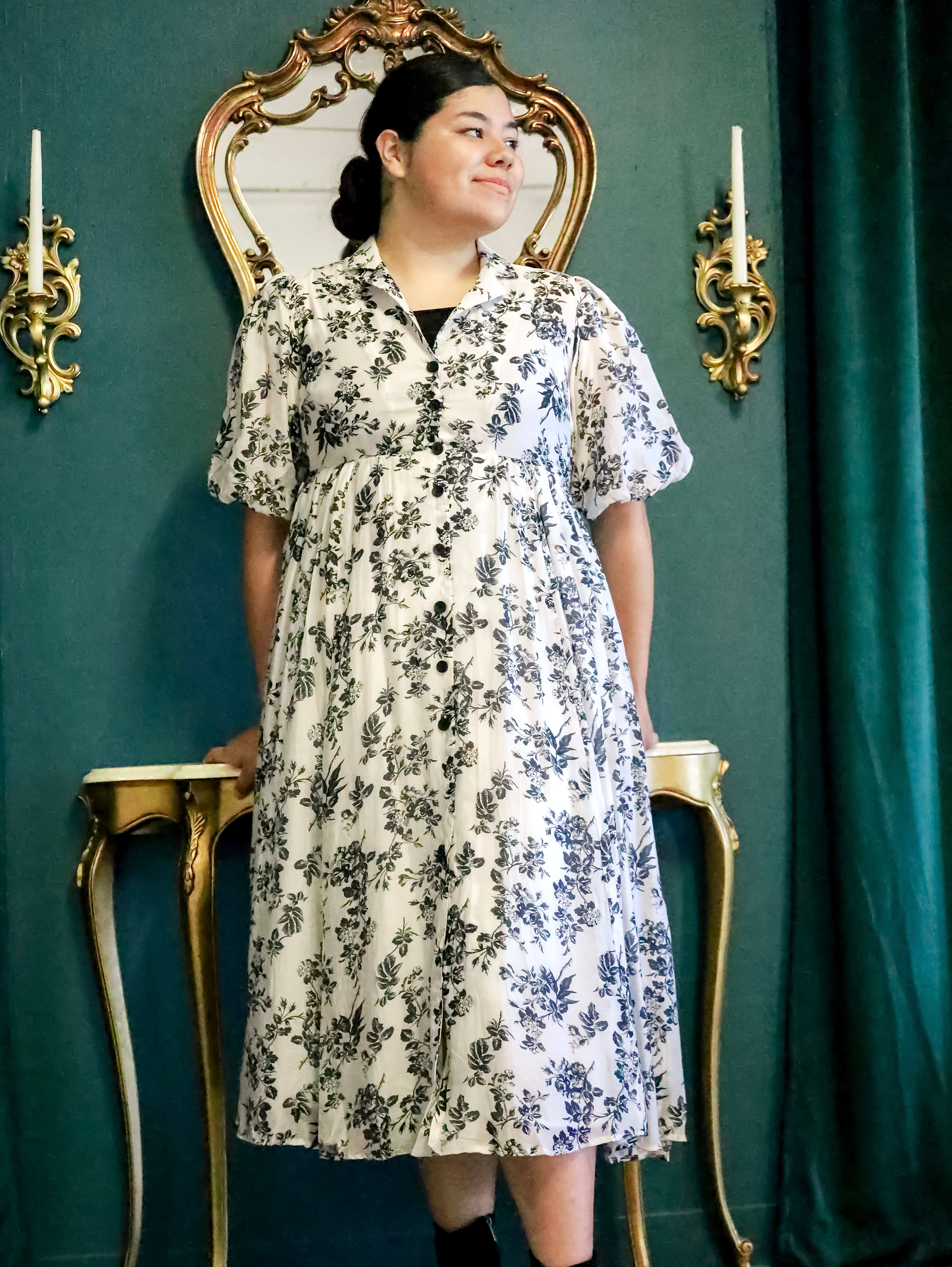 Step into sophistication with our Evening in Paris Black and White Button Down Midi Dress. Crafted with a beautiful floral tencel fabric and featuring puff bubbled sleeves, collared lapels, and functional buttons, this dress exudes elegance. Complete with side pockets and full lining for convenience and comfort. Perfect for any special occasion.