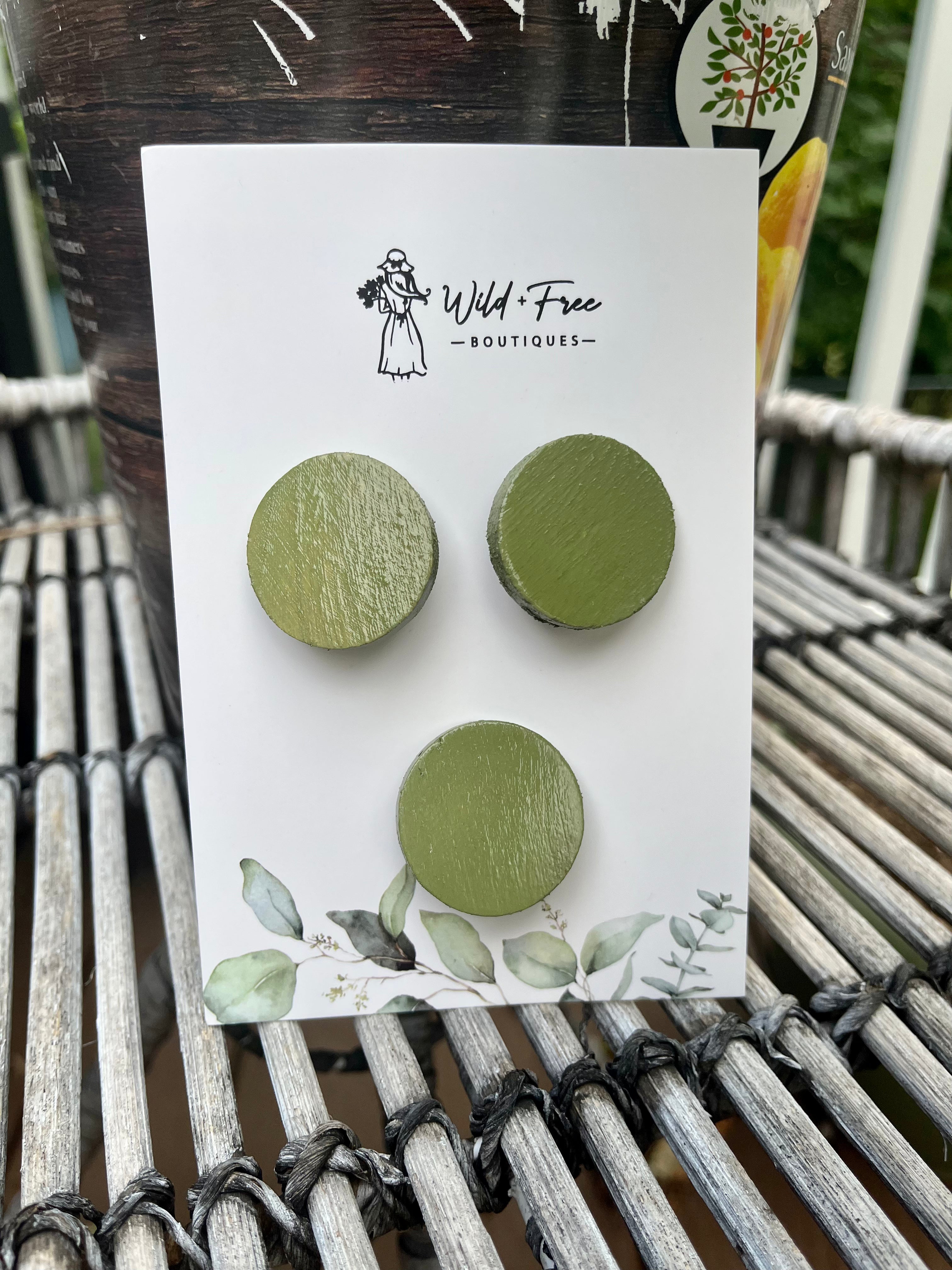 These handmade wooden hair clips come in our best selling circle shape. These cute clips are available in the color sage. We love these clips to wear in buns, brains, and with your hair down. These clips also make unique and fun, hand made presents.